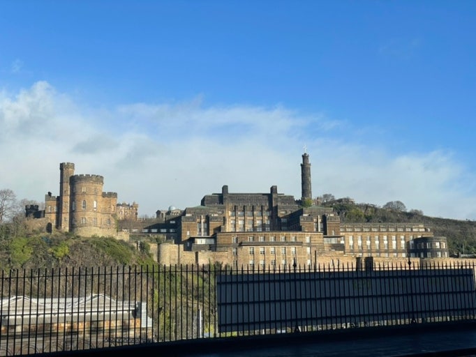 그 길을 따라 이어지는 **칼튼힐(Calton Hill)**은 또 다른 매력을 지닌 명소입니다. 해 질 무렵 올라가면 에딘버러 올드타운과 뉴타운이 한눈에 내려다보이는 파노라마 뷰를 감상할 수 있습니다.